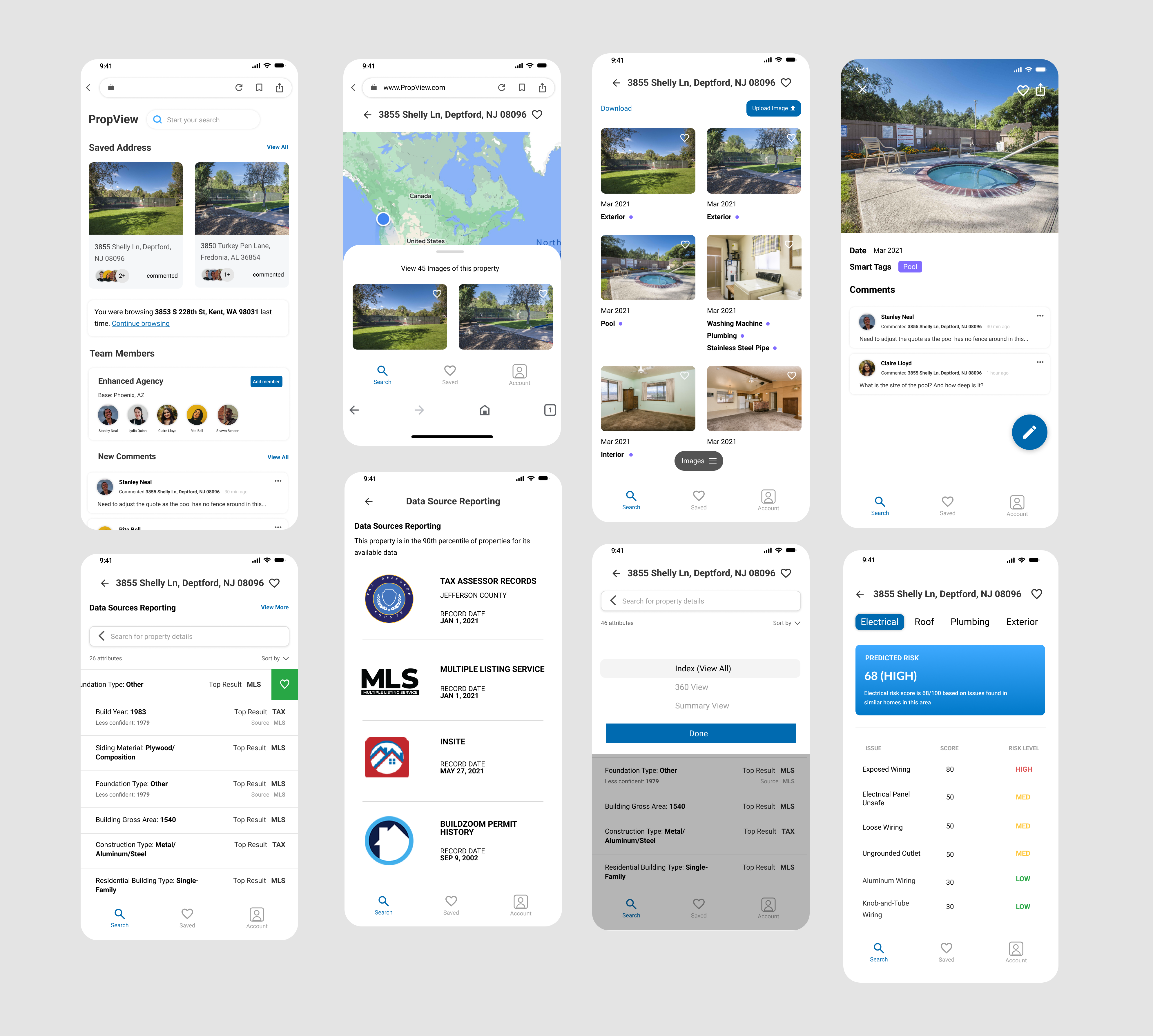 PropView is a “one-stop-shop” for property photos, information, map view, and AI-enhanced predictions about the property or its attributes. Before I join, PropView was mainly used by Amfam underwriters. We wanted to expand the use case of PropView by creating customized experiences for the following user groups: Agents, Claims, Public, and Commercial Farm/Ranch. I focused on agents during my employment as they are important stakeholders of the company. I designed the mobile version of PropView for agents to use when they need to visit properties in person.